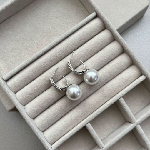BRINCO DE PÉROLA SHELL E CRISTAL PRATA RODINADA